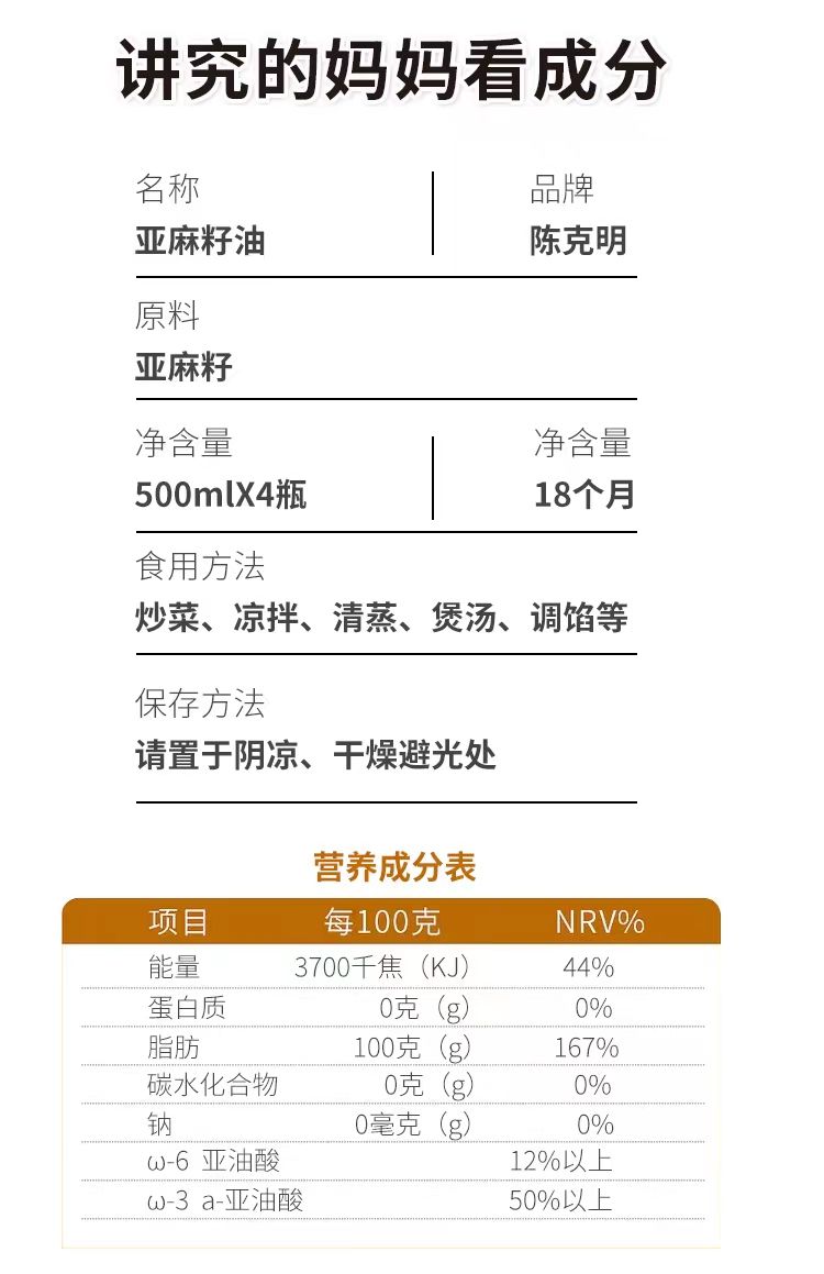 陈克明500ml*4瓶亚麻籽油 礼盒(黑色兰花-PET)