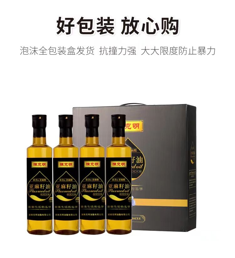 陈克明500ml*4瓶亚麻籽油 礼盒(黑色兰花-PET)