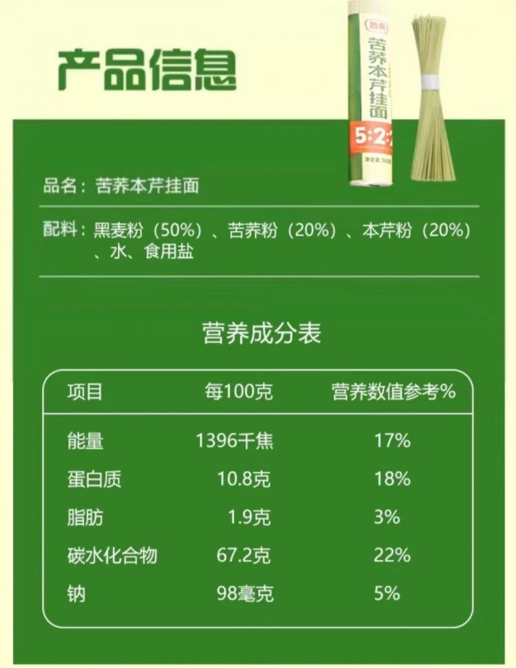苦荞本芹挂面3包每包500克