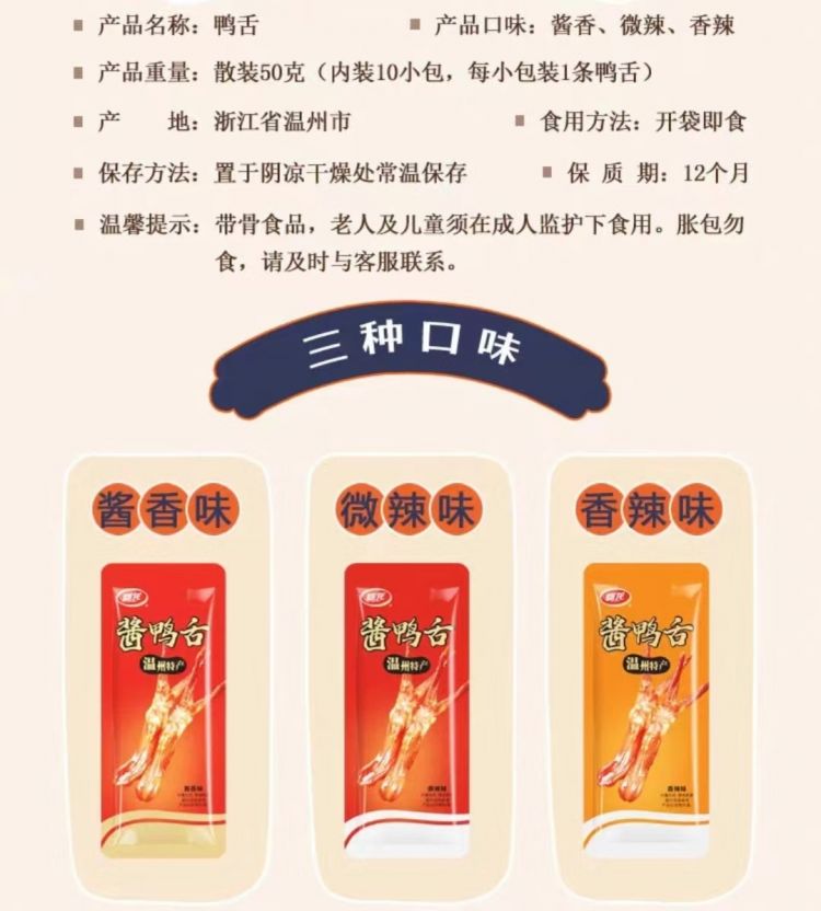 温州特产鸭舌50克/3包