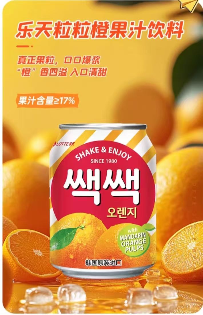 乐天粒粒橙果汁饮料238克X12