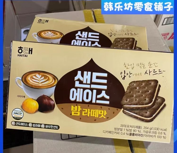 海太板栗拿铁咖啡味夹心饼干204克2盒
