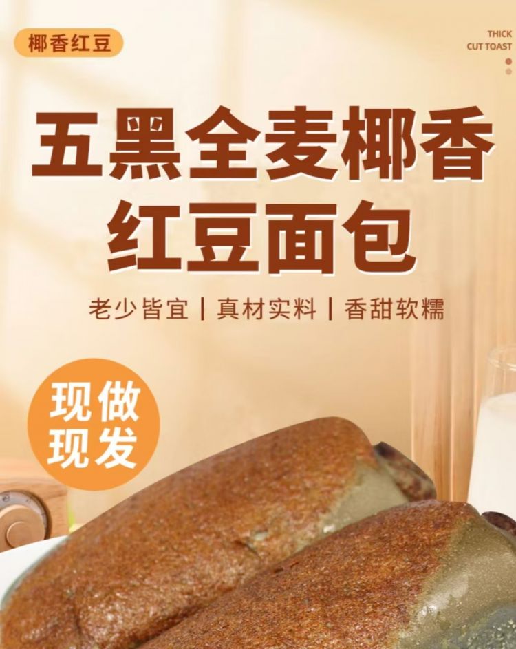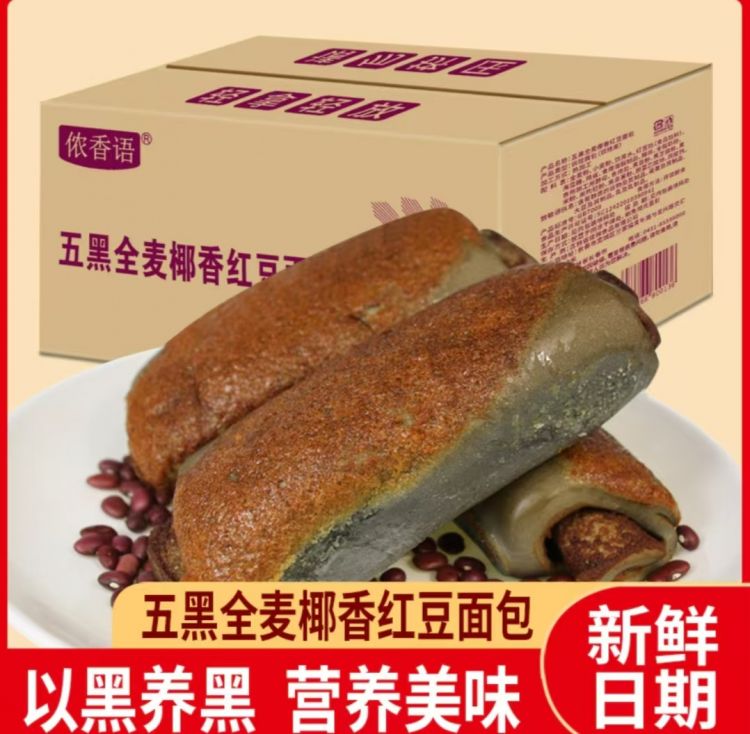 五黑全麦椰香红豆面包80克10袋