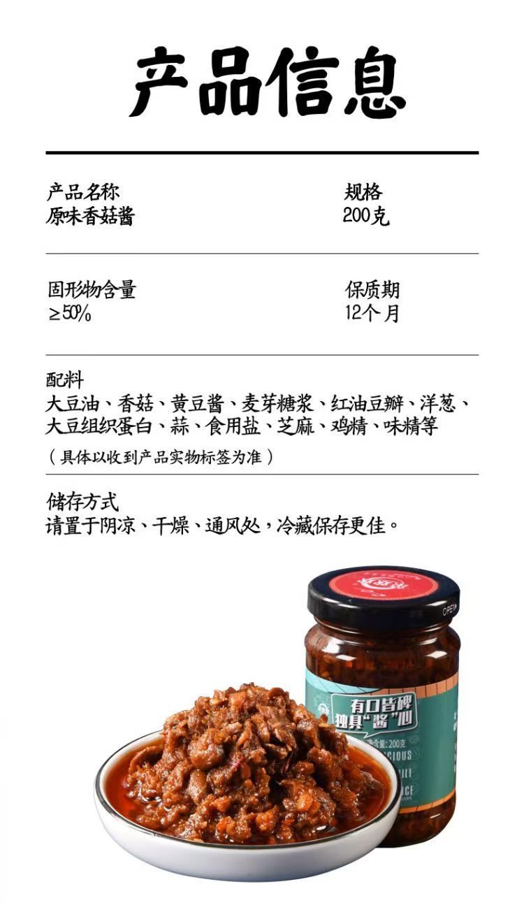 菜欢欢主款原味香菇200g*3瓶