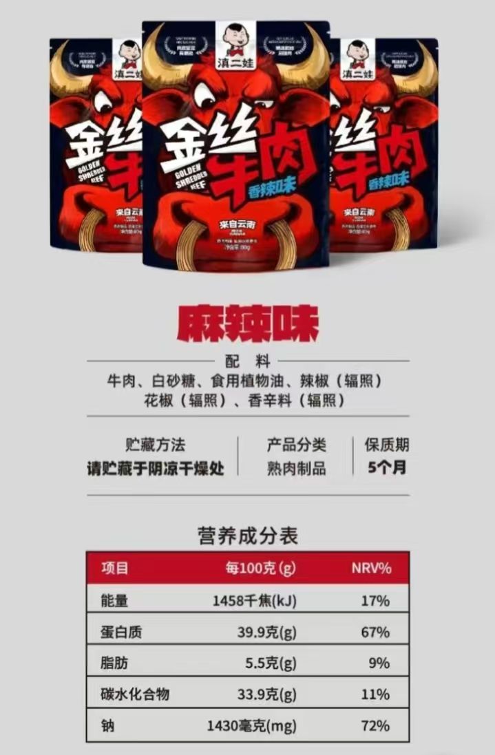 滇二娃金丝牛肉80克/袋麻辣1袋