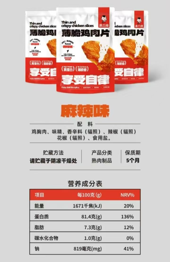 滇二娃薄脆鸡肉片50克/袋2袋麻辣味