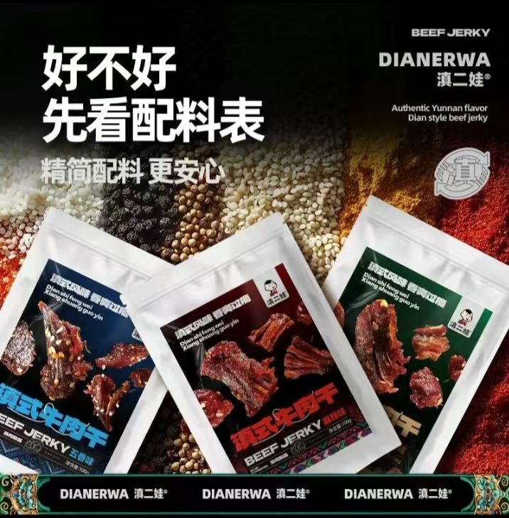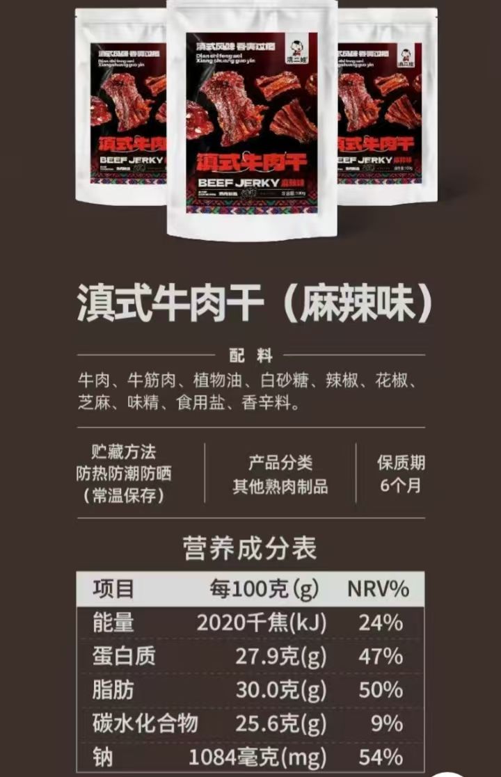 滇二娃滇式牛肉干100克/袋麻辣味2袋