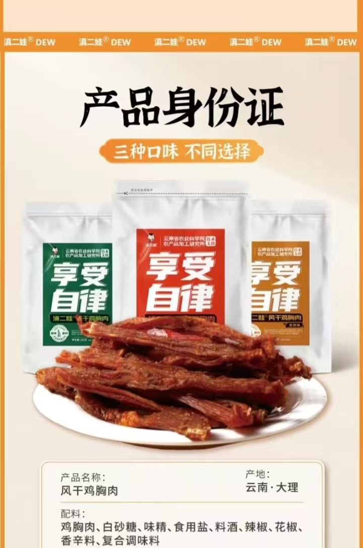 滇二娃风干鸡胸肉102克/袋藤椒味2袋