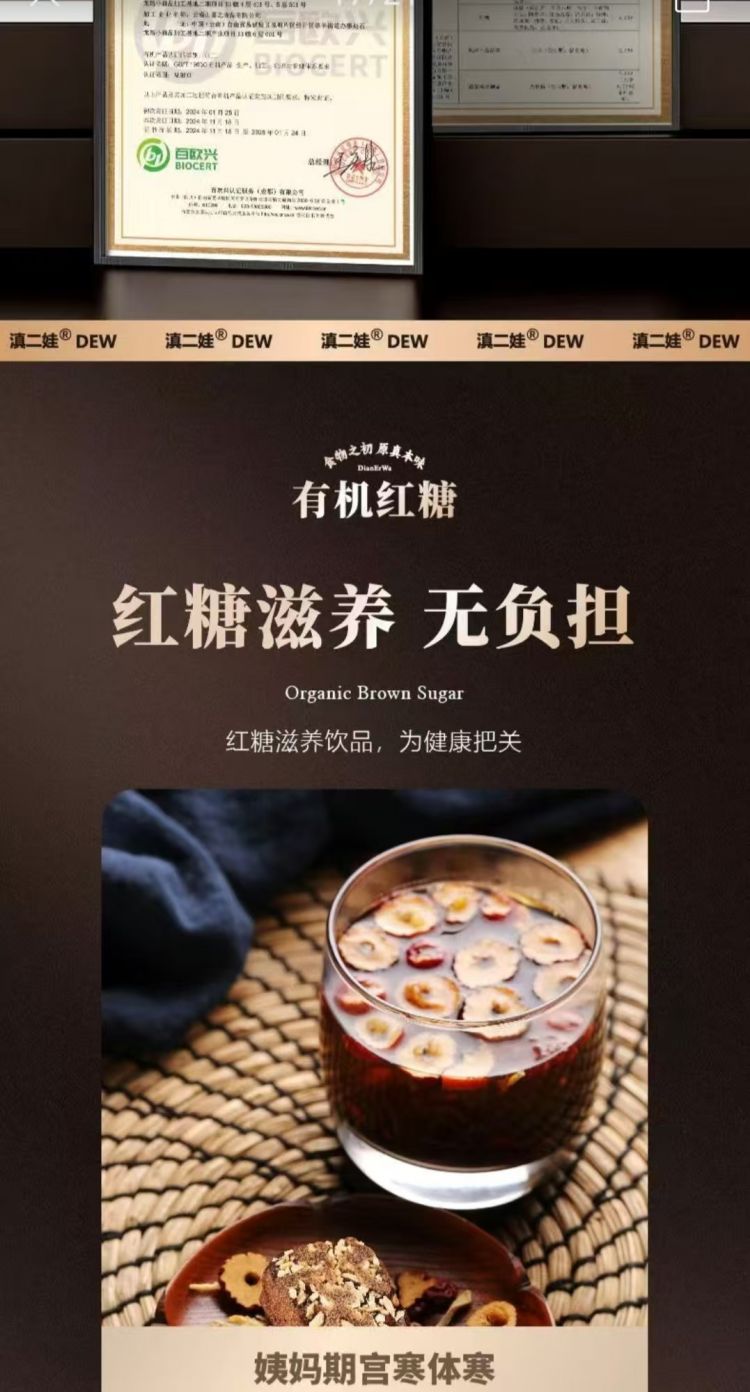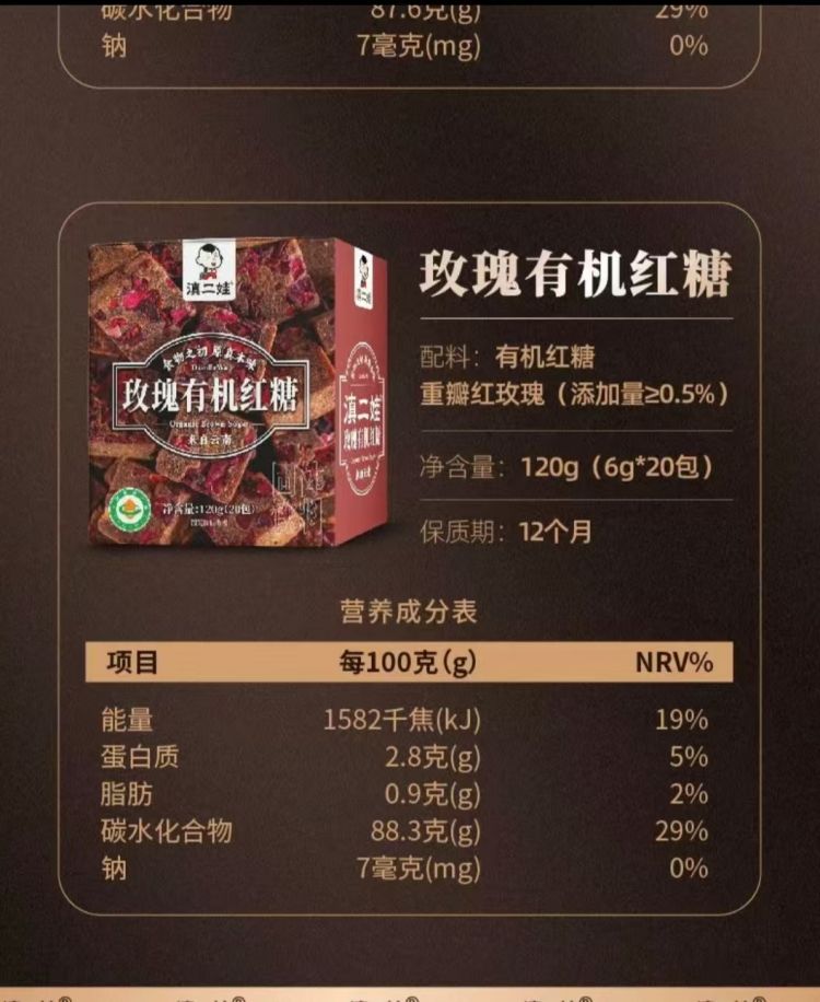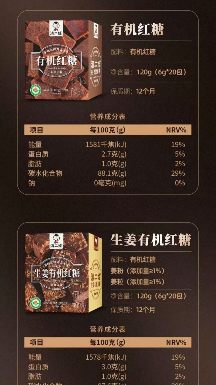 滇二娃有机红糖120克/盒20小包2盒