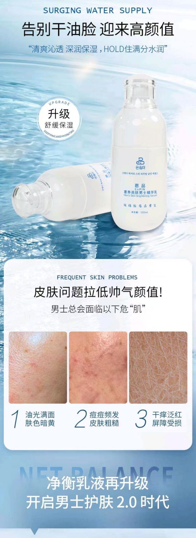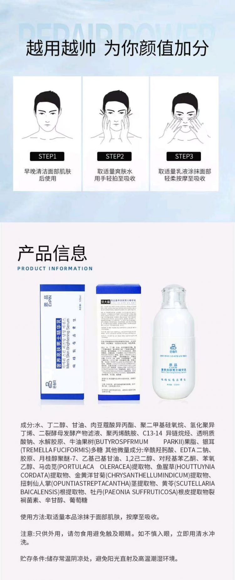 叶大福奢养亮肤男士精华乳保湿舒缓
