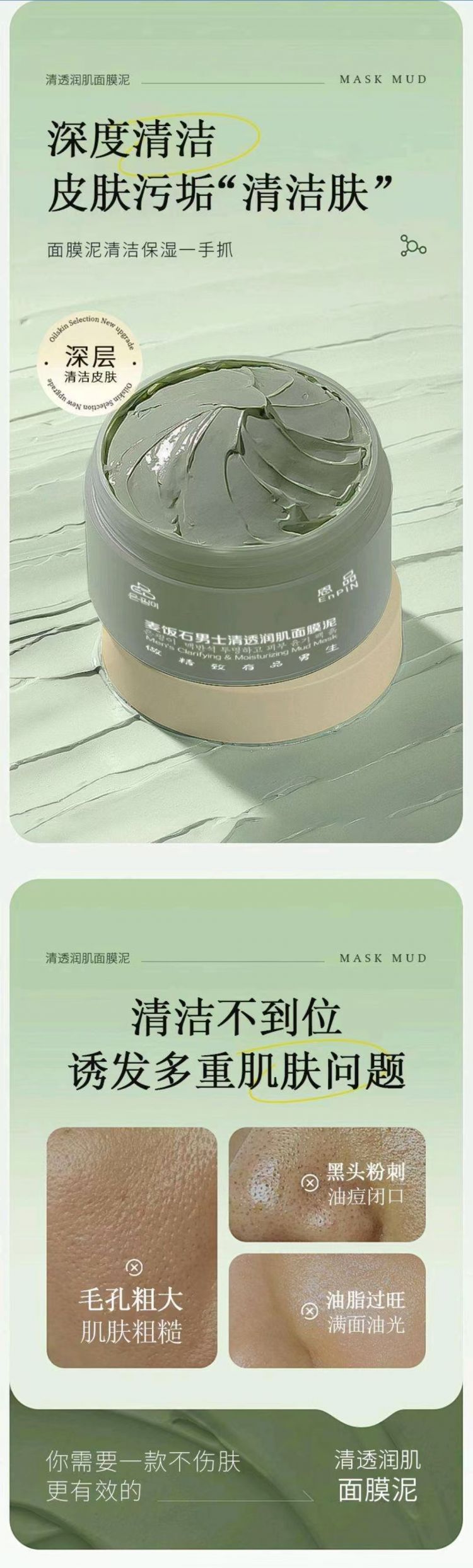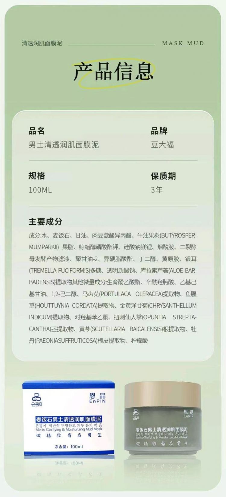 叶大福金点麦饭石清透润肌男士面膜泥100ml