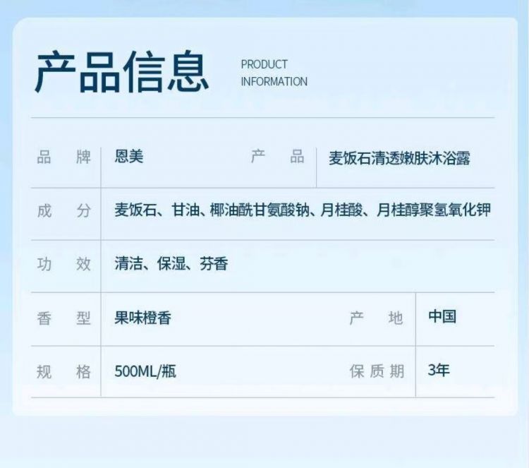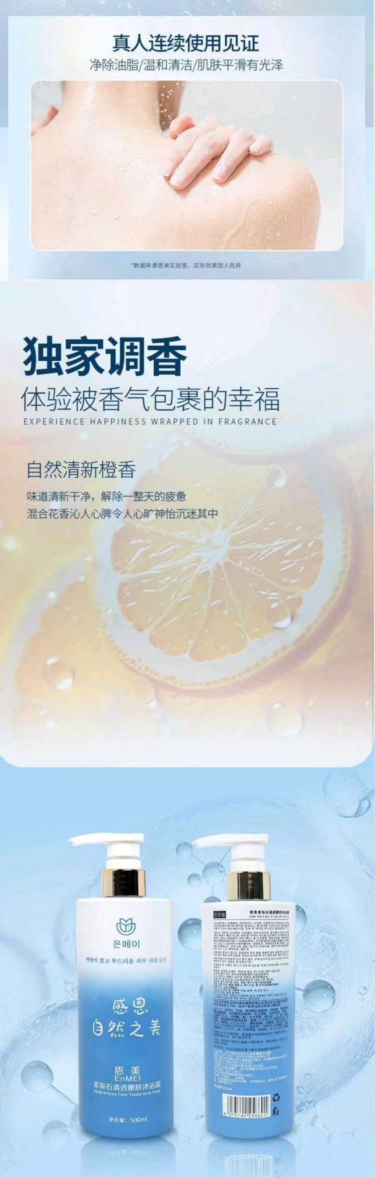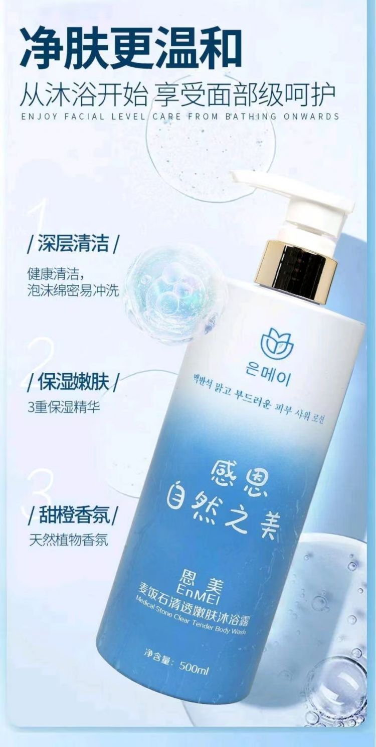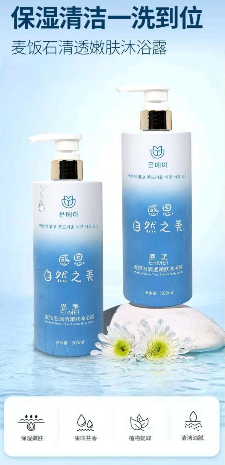 叶大福金点麦饭石清透嫩肤沐浴露保湿清洁香味持久500ml一瓶