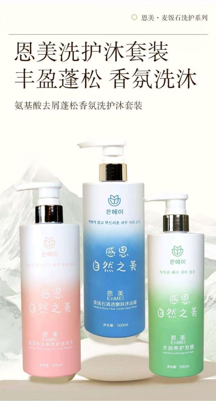 叶大福金点麦饭石洗护沐套装(洗发水+沐浴露+发膜)