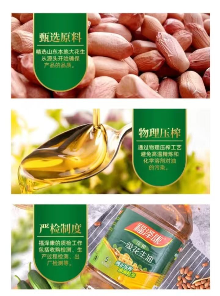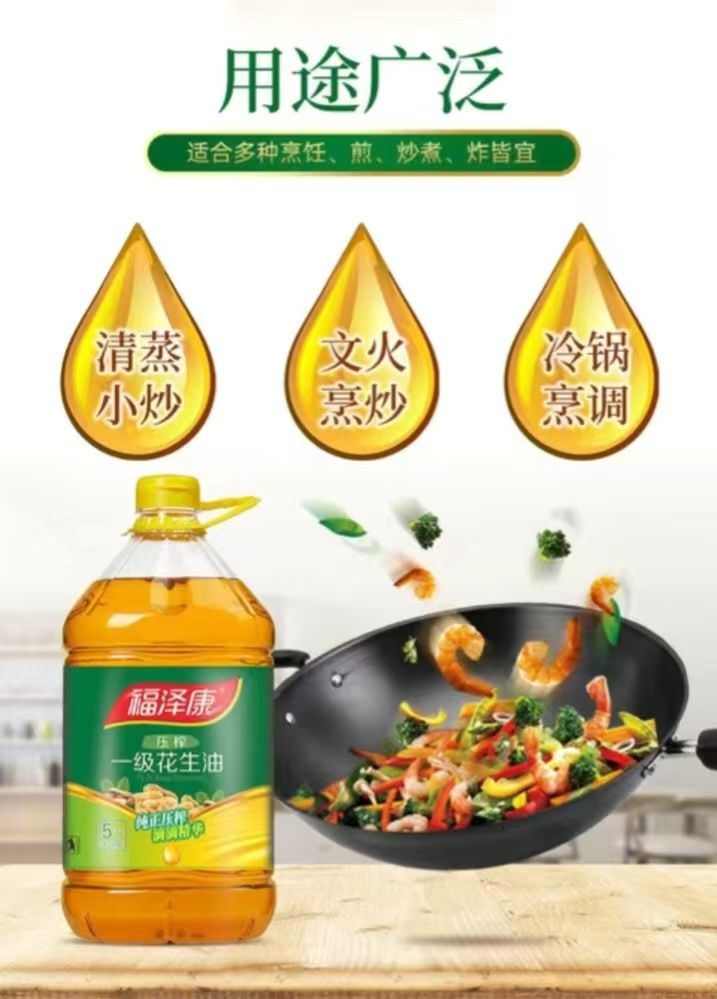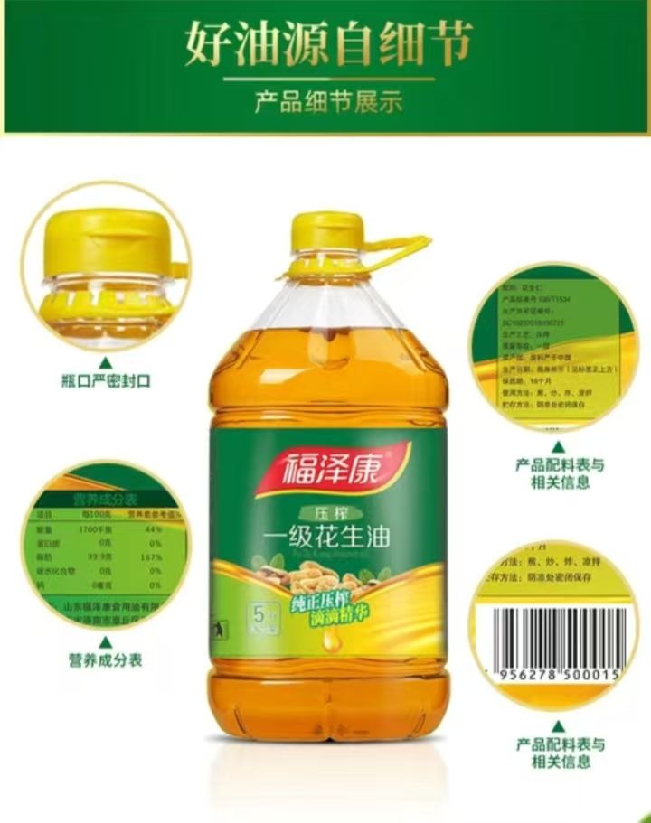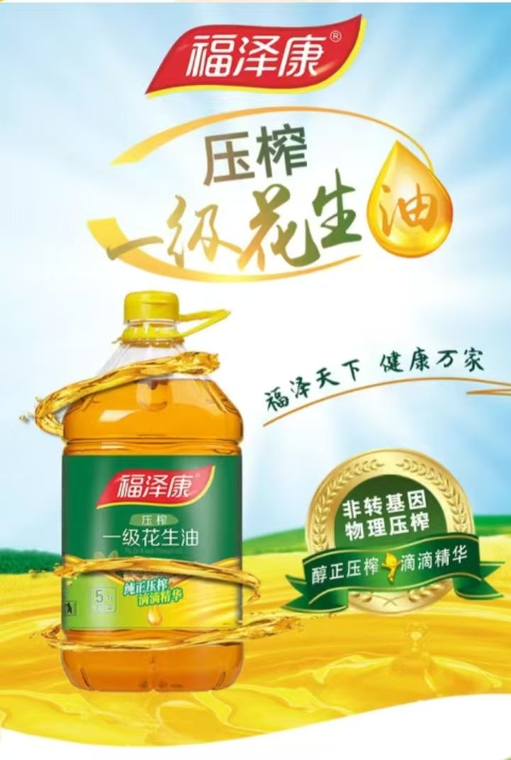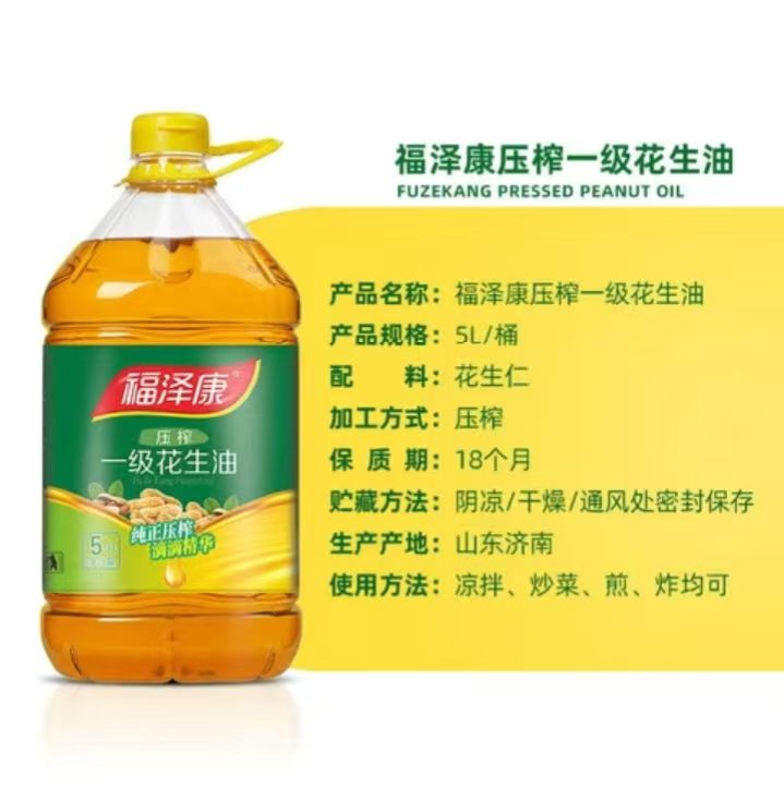 福泽康5升浓香一级花生油。非转基因。纯手工制作压榨一箱